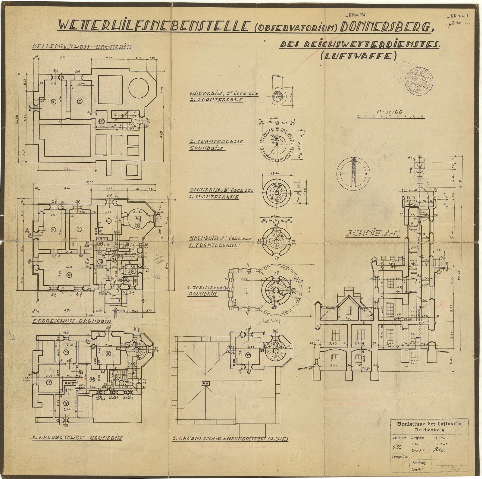 Po vyhlášení mobilizace v září 1938 bylo pozorování na stanici na měsíc přerušeno. Observatoř byla vyjmuta z kompetence Německé univerzity a převzal ji Říšský úřad pro meteorologickou službu, nejdříve jako součást civilní služby a od července 1944 jako součást vojenské letecké služby.