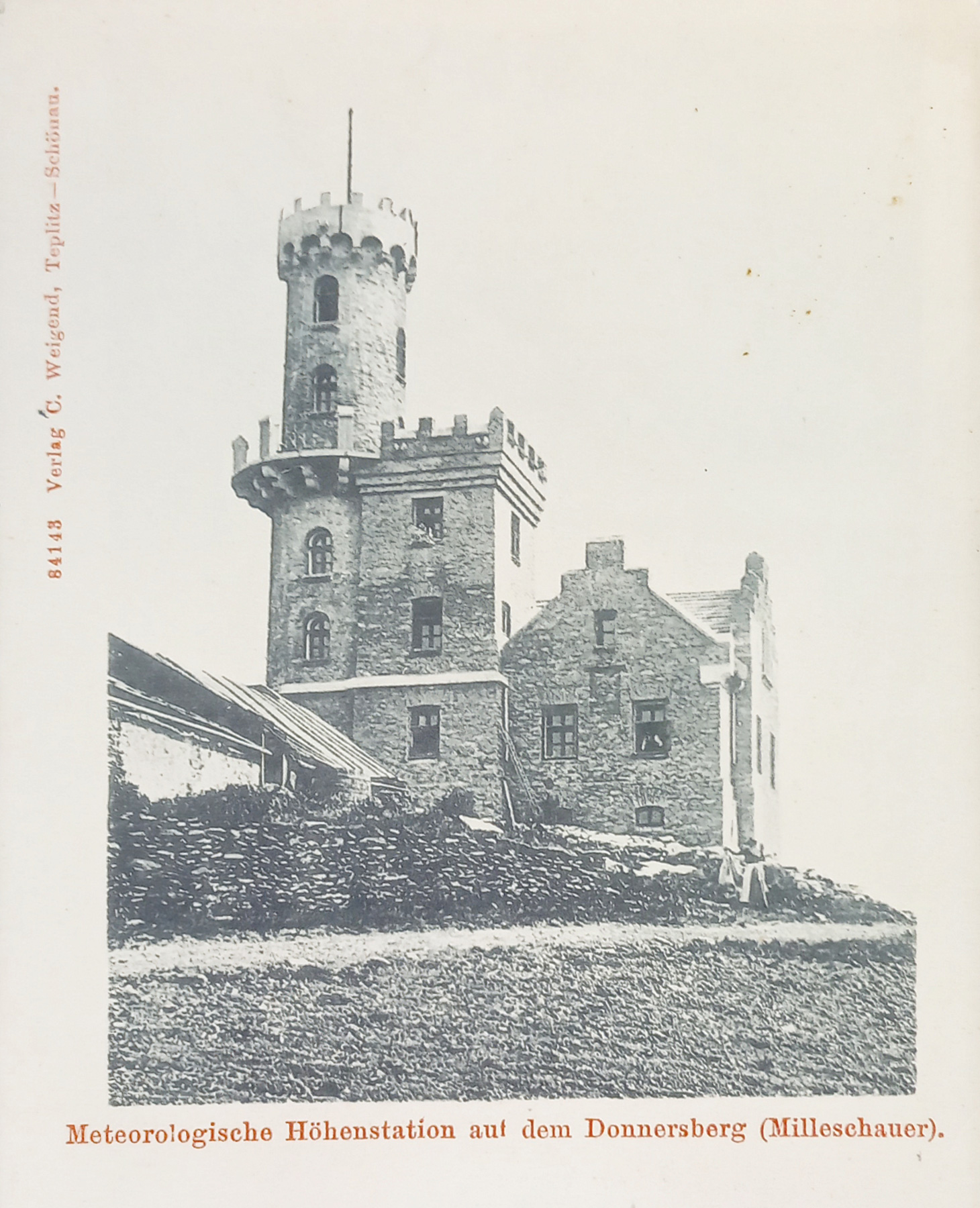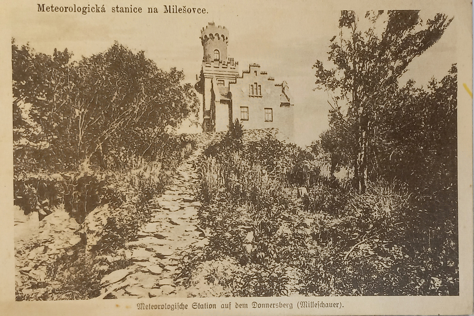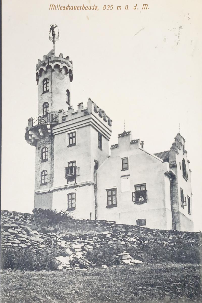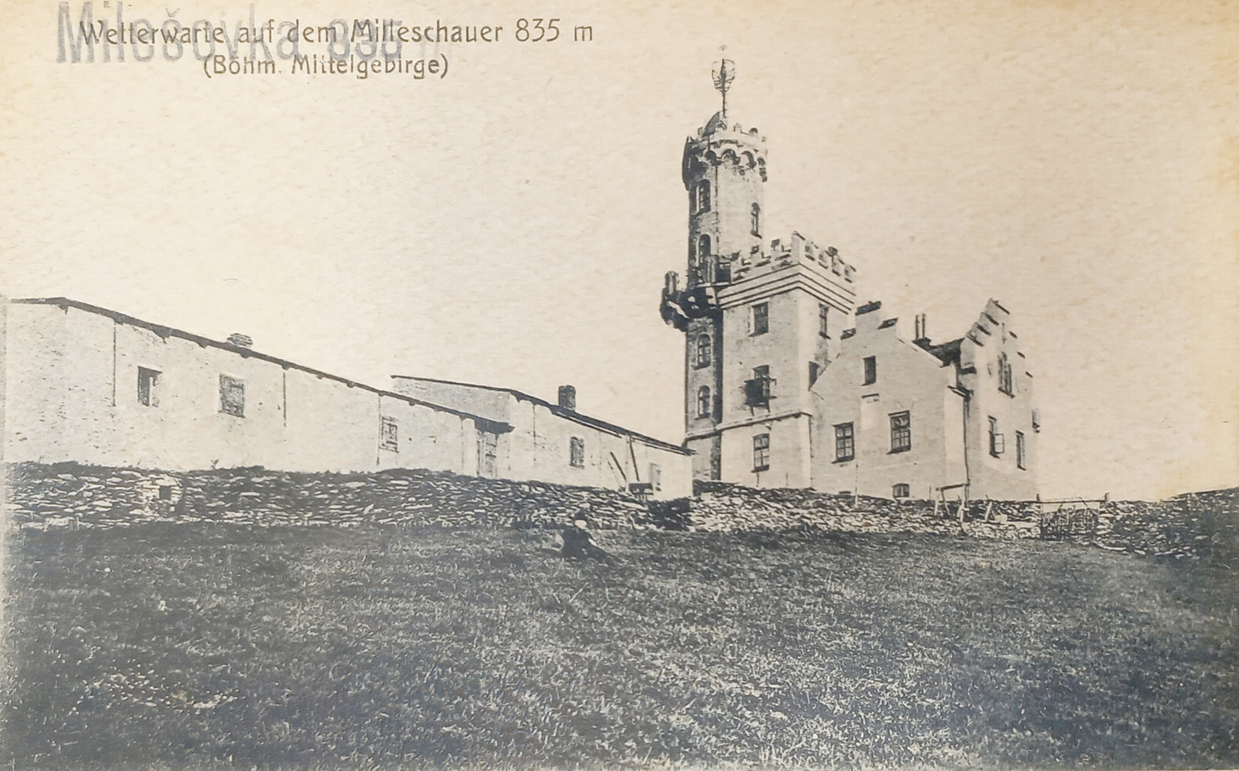 První významnou stavbou, která byla postavena na Milešovce byla malá hospoda, kterou v roce 1820 vybudoval za velmi obtížných podmínek hostinský Anton Weber z Velemína.