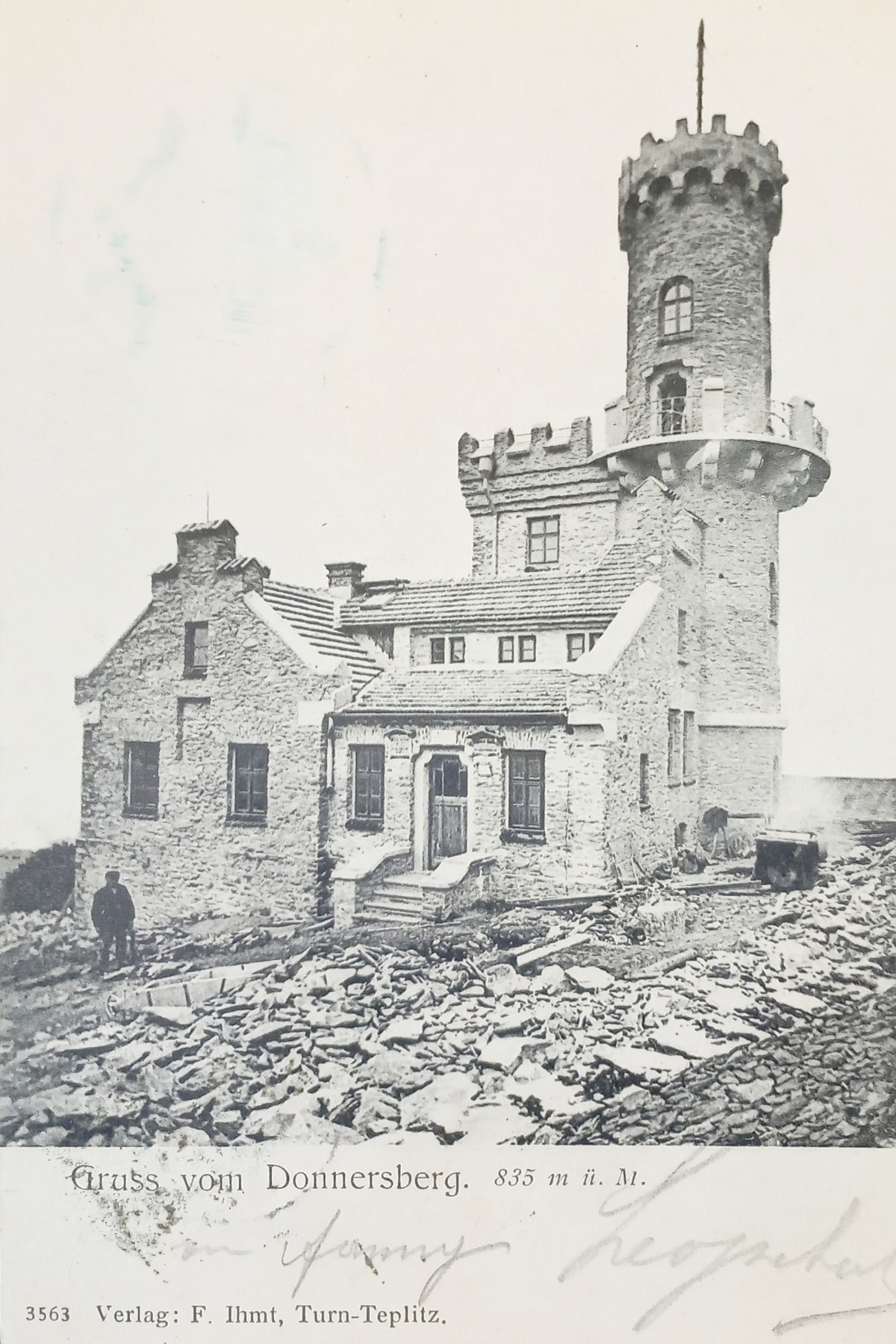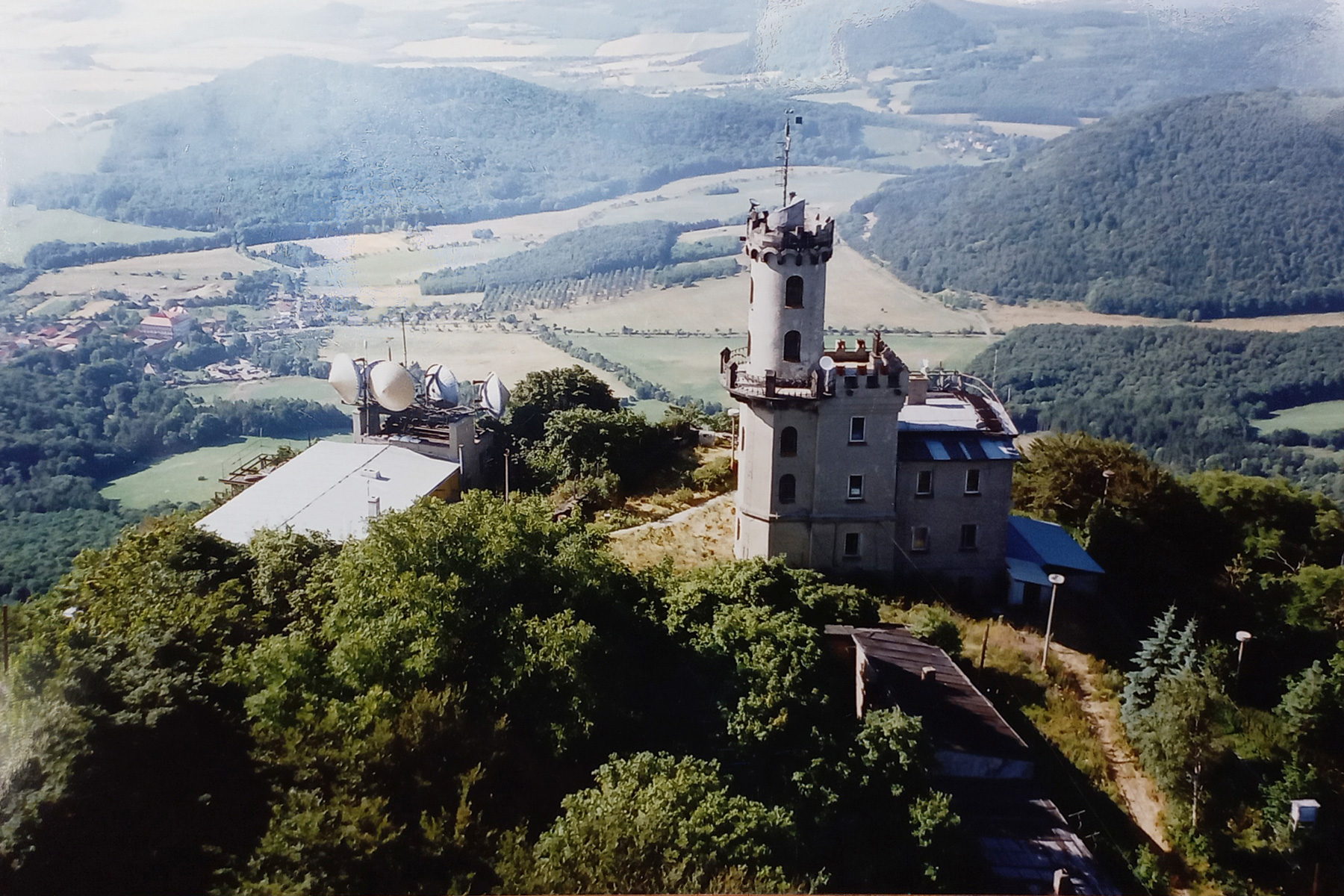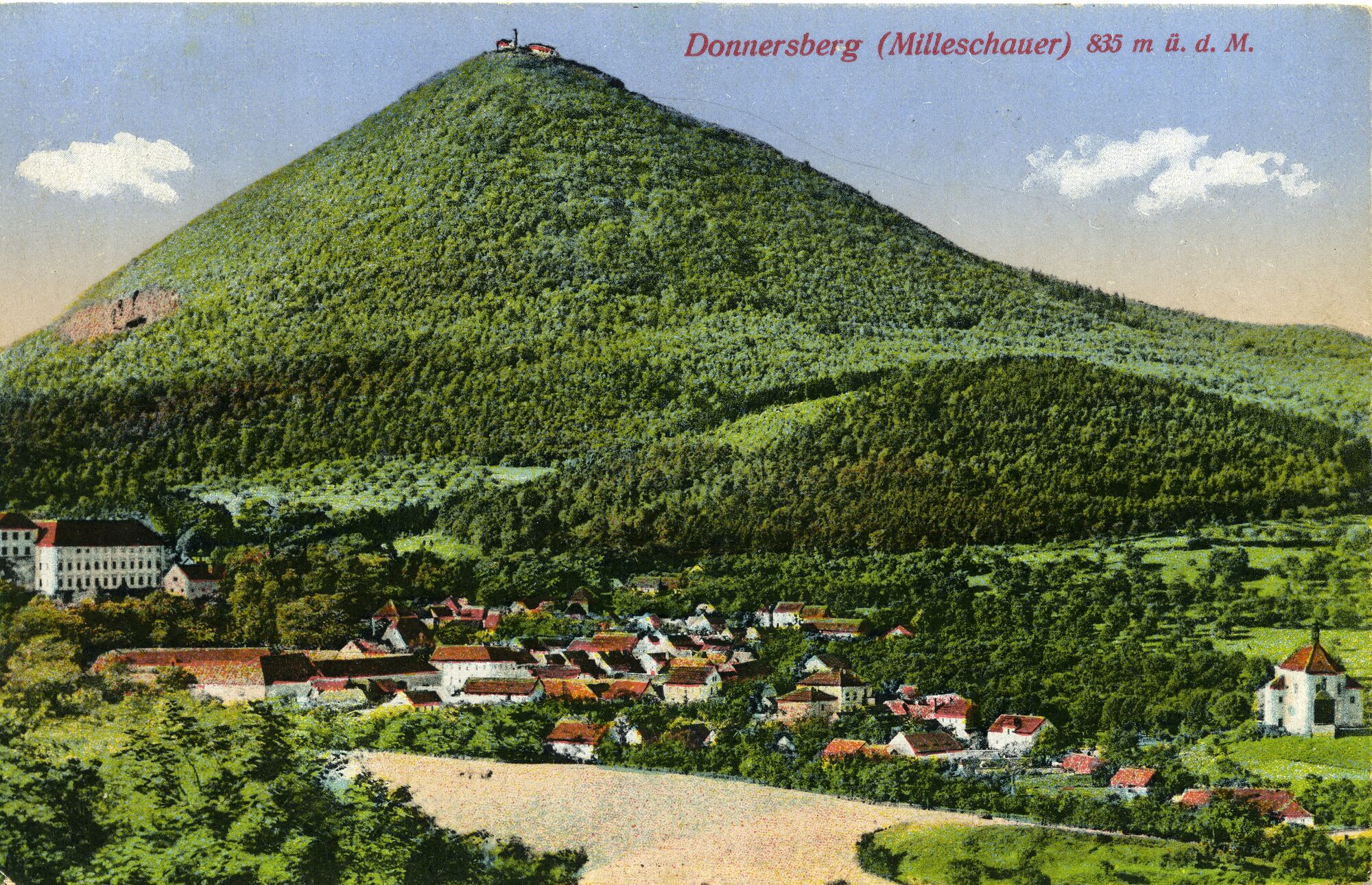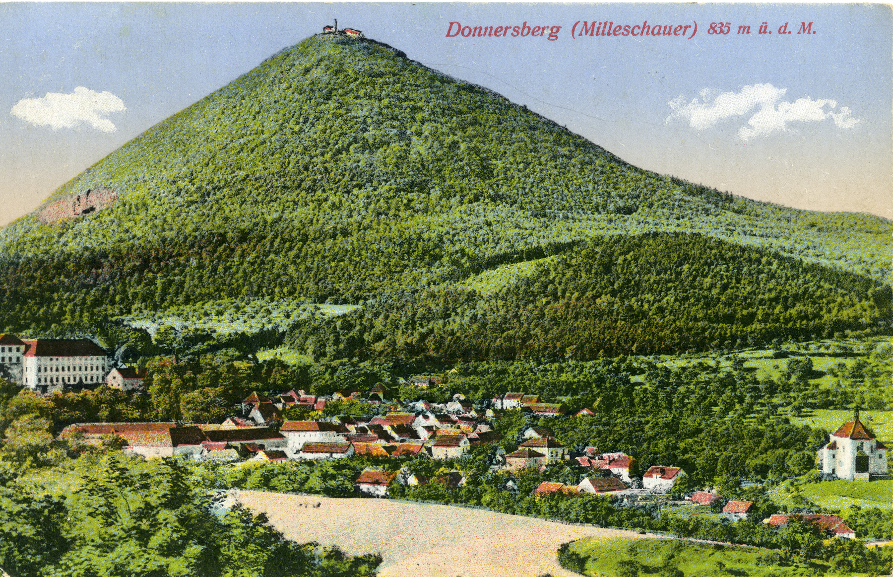 První významnou stavbou, která byla postavena na Milešovce byla malá hospoda, kterou v roce 1820 vybudoval za velmi obtížných podmínek hostinský Anton Weber z Velemína.