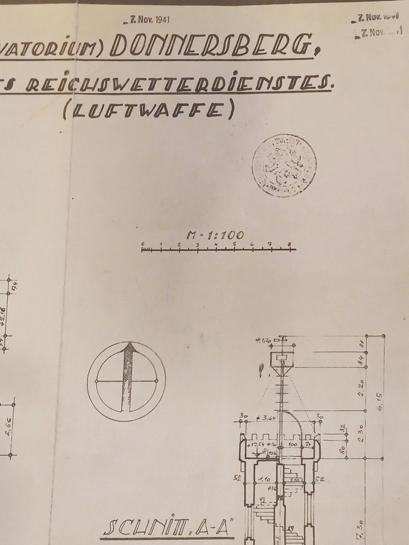 Po vyhlášení mobilizace v září 1938 bylo pozorování na stanici na měsíc přerušeno. Observatoř byla vyjmuta z kompetence Německé univerzity a převzal ji Říšský úřad pro meteorologickou službu, nejdříve jako součást civilní služby a od července 1944 jako součást vojenské letecké služby.